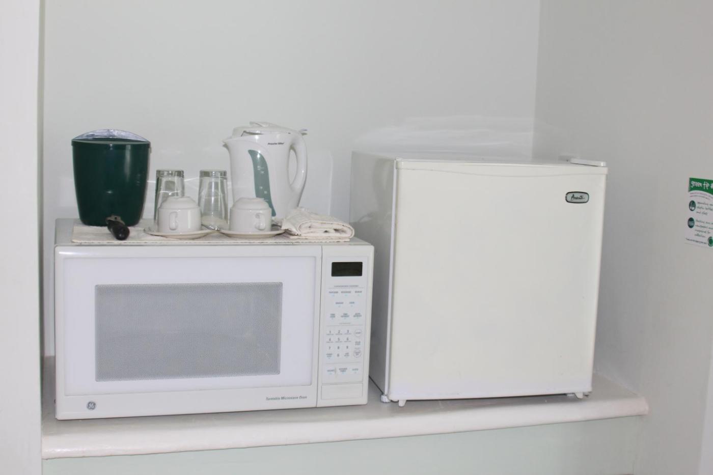 Studio with Pool View. In the well-fitted kitchenette, guests will find a stovetop, a refrigerator, kitchenware and a microwave. This air-conditioned studio is comprised of a flat-screen TV with cable channels, a private bathroom as well as a terrace with pool views. ;