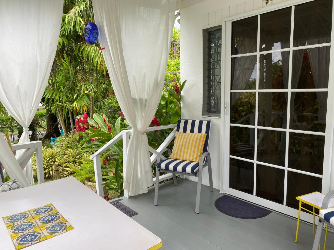 Holiday Home. This holiday home feature 1 bedroom with queen size bed, 1 bathroom, a fully equipped kitchenette and deck overlooking the garden with dining furniture in it. A private entrance, private garden with lounge chairs and BBQ grill. Other amenities include washing machine, AC, WIFI, safety deposit box, ceiling fans, linens, beach and bath towels.